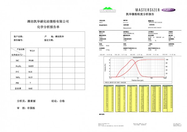 W2.5綠碳化硅微粉是選用優(yōu)質(zhì)大結(jié)晶碳化硅塊經(jīng)破碎、精密分級(jí)而成,品質(zhì)穩(wěn)定,結(jié)晶好,表面清潔度高,無(wú)大顆粒,細(xì)粒含量少,粒度分布集中,研磨效率高。